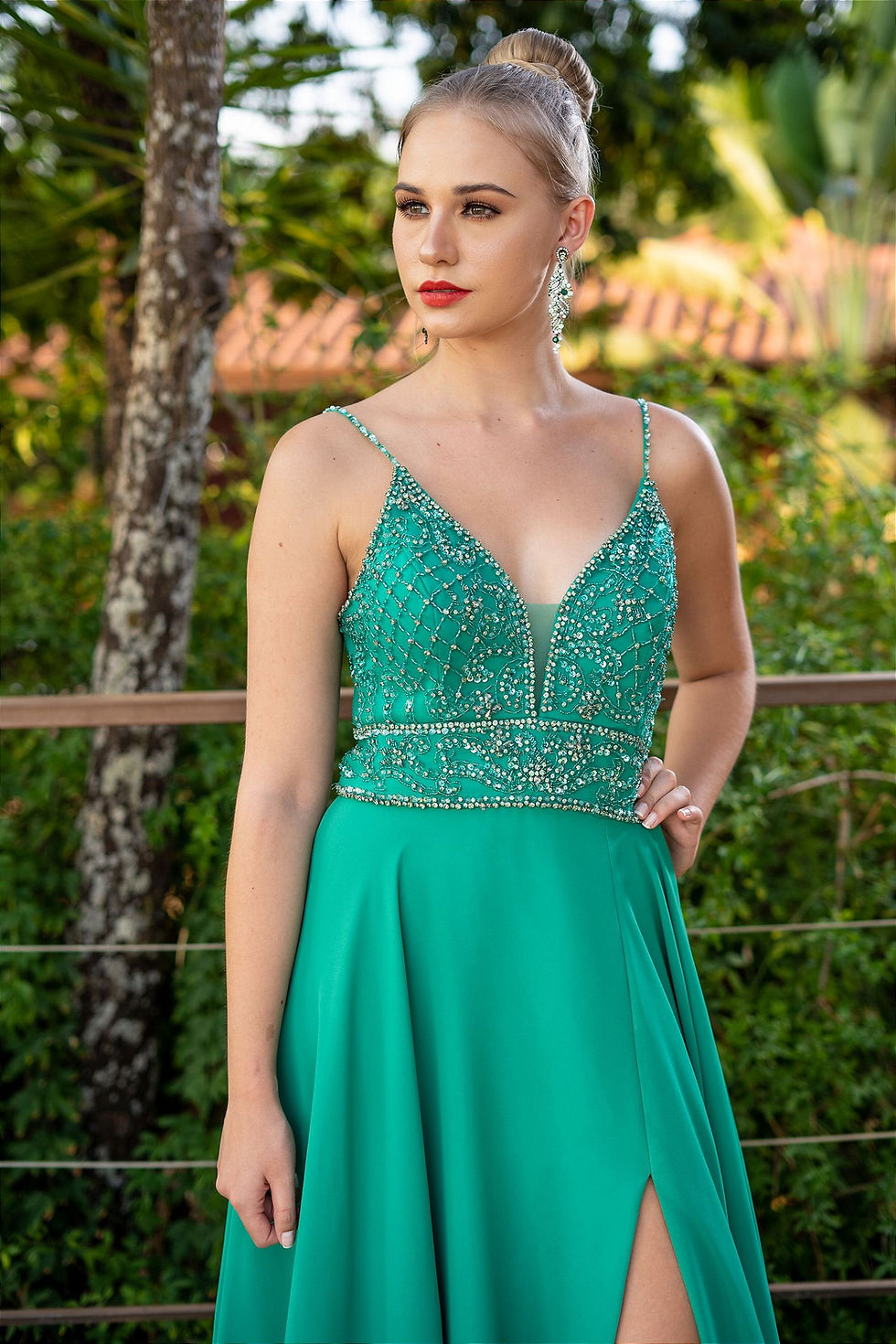 Vestido de Festa Verde Esmeralda Longo Bordado Martina