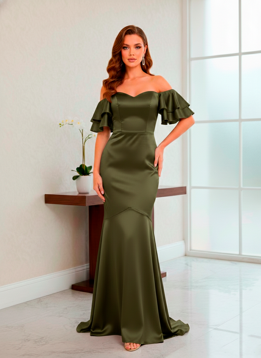 Vestido de Festa Longo Verde Oliva Kefera